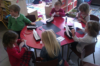 Na de speeltijd konden we een Aya maken. Je moest Aya kleuren en daarna uitprikken. Je kan ze bewonderen aan onze grijze muur. Omdat het filmpje van Aya ging over oversteken over het zebrapad en er zeker niet op het zebrapad blijven spelen, hebben we allemaal zebrapaden gemaakt. De kleuters van de tweede KK moesten 7 stroken uitknippen op de lijntjes en er een zebrapad van maken op een zwart papier. De kleuters van de derde KK kregen geen lijntjes meer maar wel een stappenplan wat ze moesten doen. Iedereen heeft er erg zijn best voor gedaan!