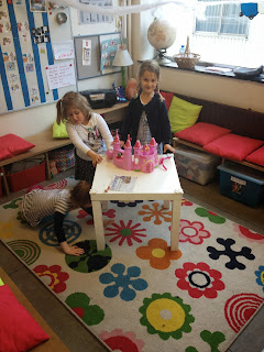 Na onze tijd in de praatronde was het tijd om er in te vliegen. Eerder in de week had Yarne een papieren vliegtuigje bij en de kleuters wilden wel eens weten hoe ze dat zelf konden vouwen. Er hing dan vandaag een stappenplan in de klas, zodat ze zelf aan de slag konden. Er waren ook schrijfoefeningen en spelletjes rond een spin ... Maar zonder twijfel haalde het stappenplan de bovenhand. Waar het begon met één iemand, stond plots de crea-hoek vol. Ze leerden elkaar hoe het moest en dat was heel leuk. Er werd gevouwen en versierd. Er werd ook nog in de hoekjes gespeeld en voor de middagpauze hielden we een wedstrijdje. We gingen op een rij staan en probeerden onze vliegtuigjes zo ver mogelijk te laten vliegen. Zo ontdekten we dat we ze op een bepaalde manier moeten werpen, anders kwamen ze niet ver.