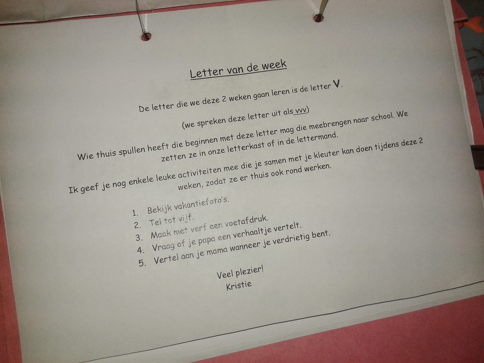 We hebben onze lettermapjes ook terug mee want volgende week leren we de letter 'V'.