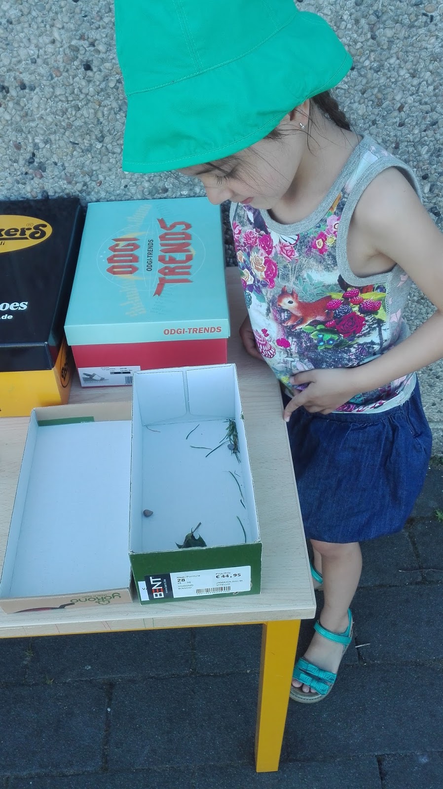 Na het onthaal konden we gaan spelen, vandaag deden we nog eens alles buiten! We konden in de waterbak spelen, kriebeldiertjes zoeken en natuurmaterialen verzamelen in eierdozen. We konden ook leuk dansen, met de bal spelen en bouwen met de houten blokken!! Echt genieten in het zonnetje!